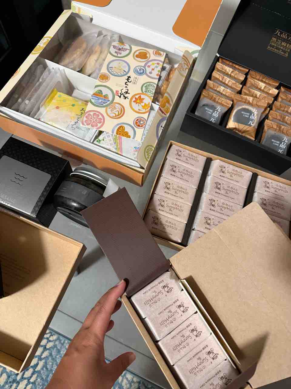 胡麻のお菓子に、胡麻ペースト、パイナップルケーキ、日本のお煎餅!