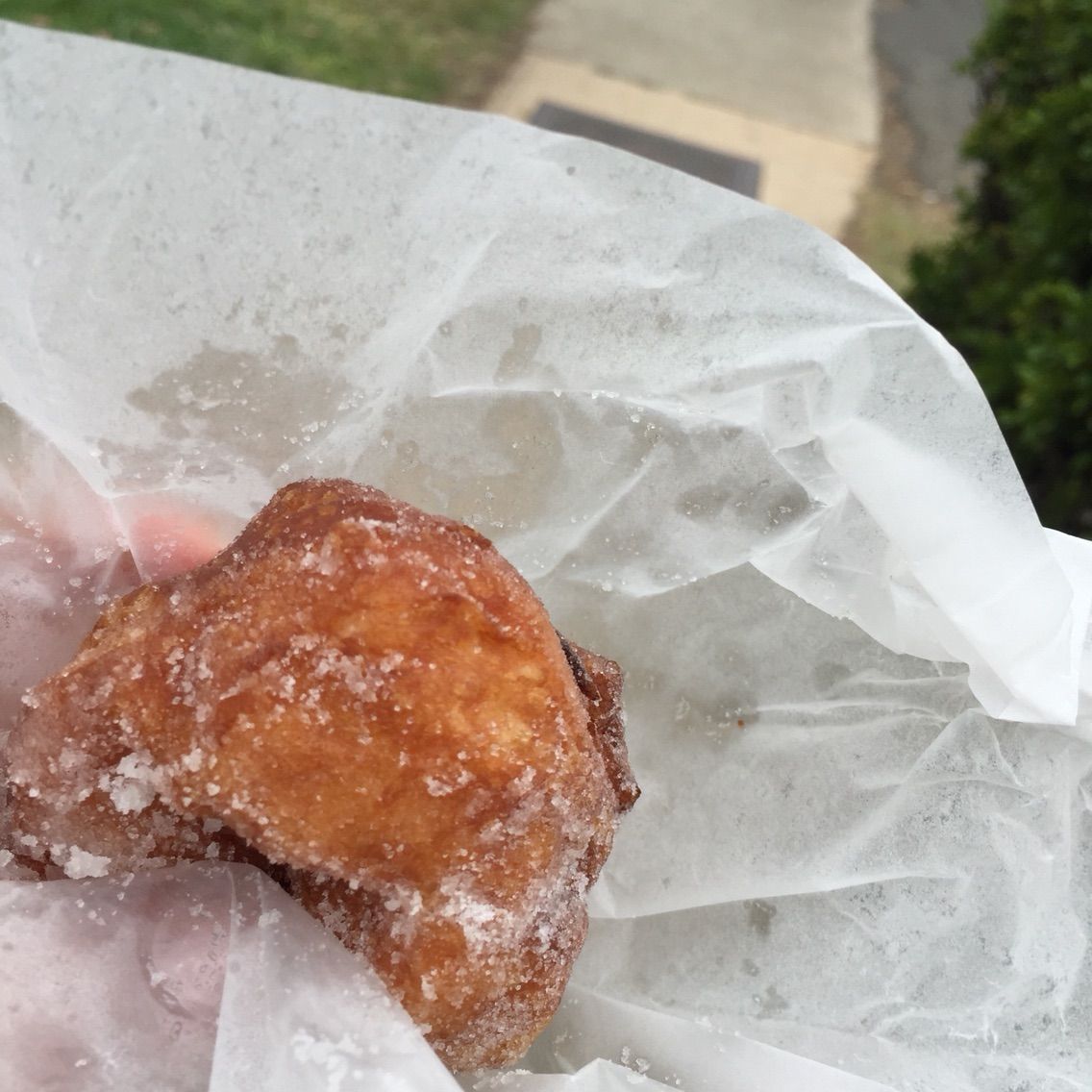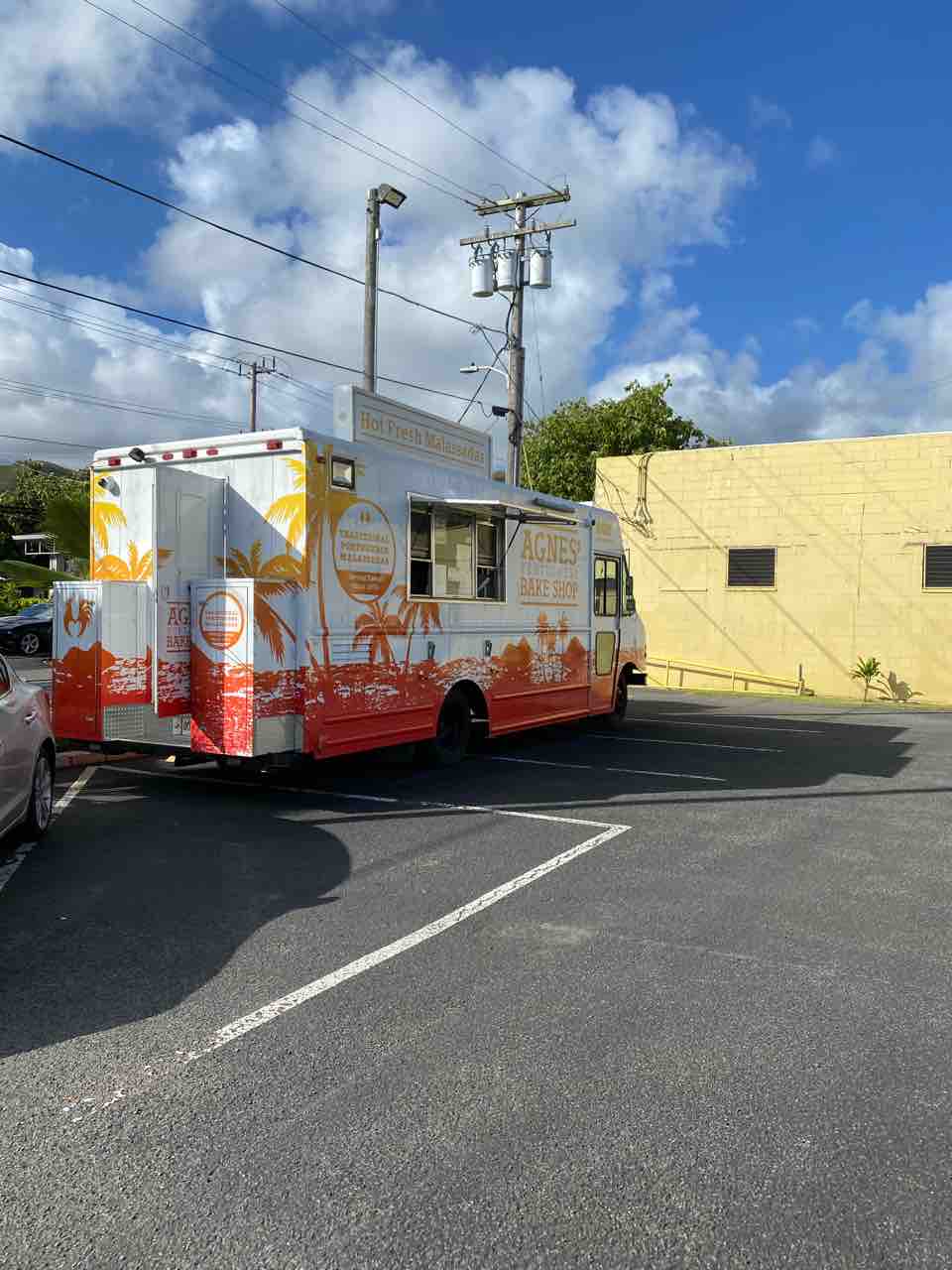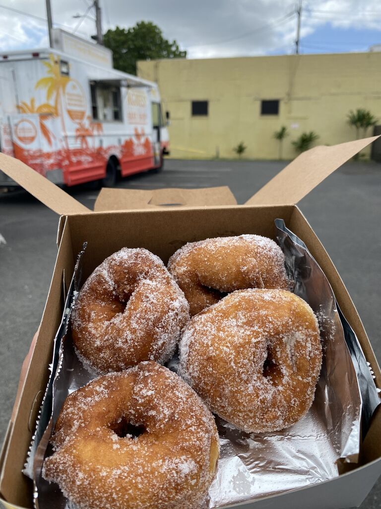 揚げたてマラサダを車の後ろのところに腰掛けて頬張る幸せよ!