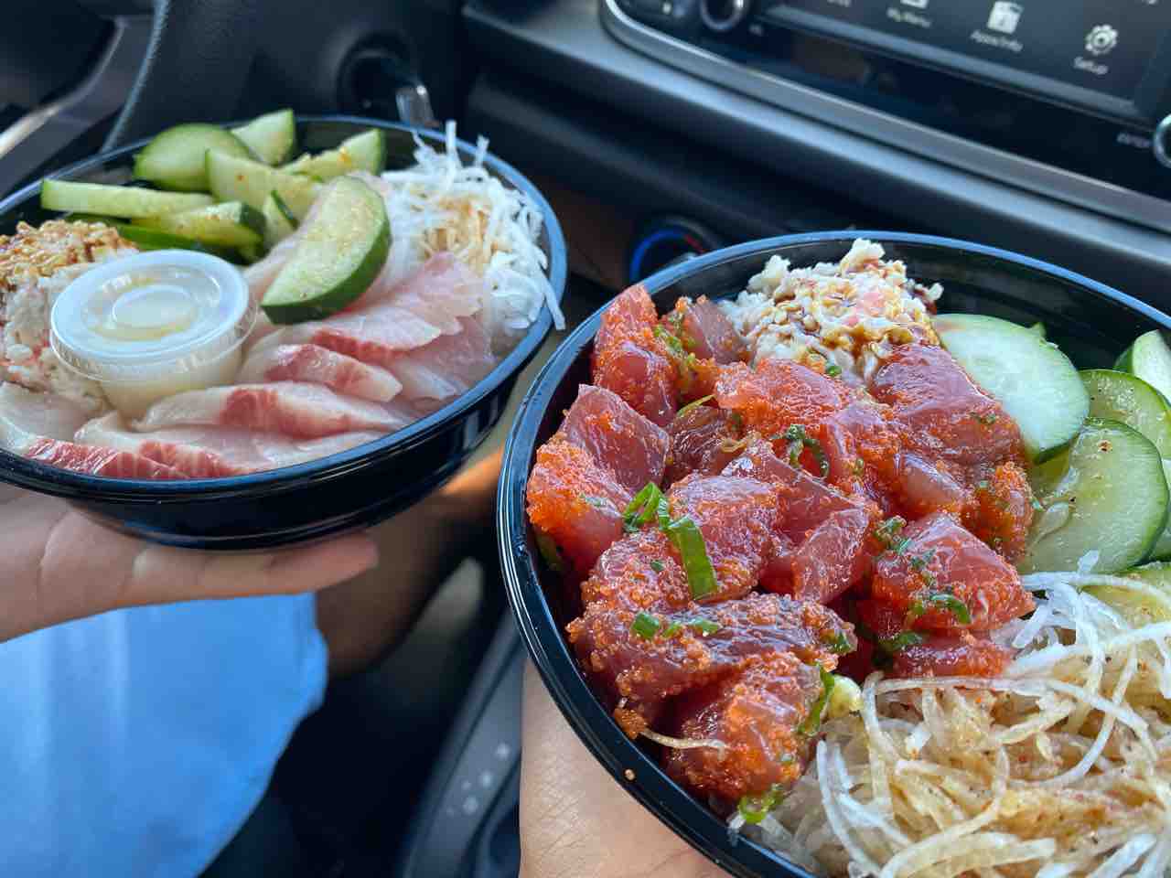 ハマチ刺身ボウル14ドルと、わさびまさごアヒポケボウル13.5ドル!
