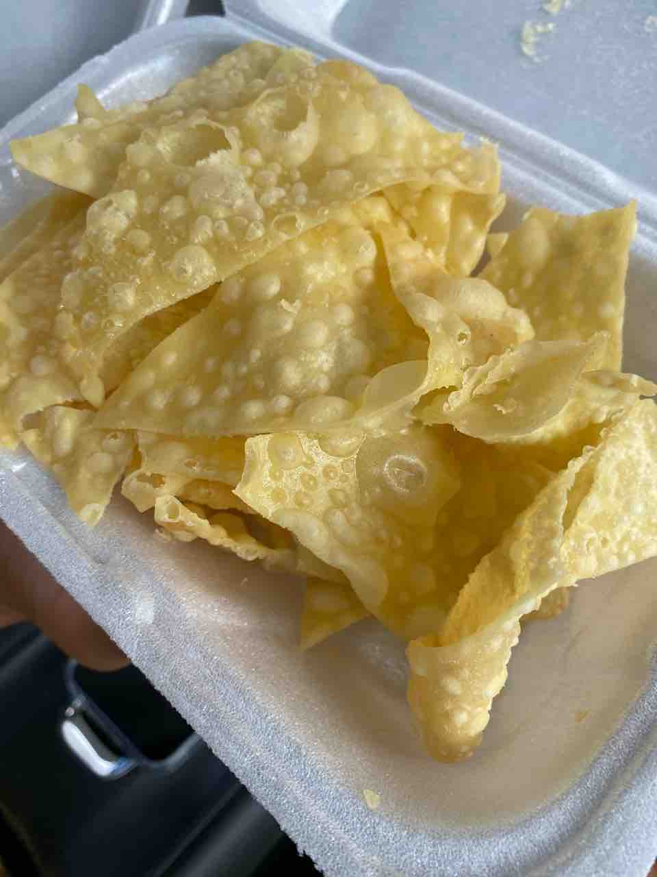 ご飯大盛りで、食べ応えありのポケボウルなのに、さらにワンタンチップスまで頼んだものだから、満腹で大変でした😂