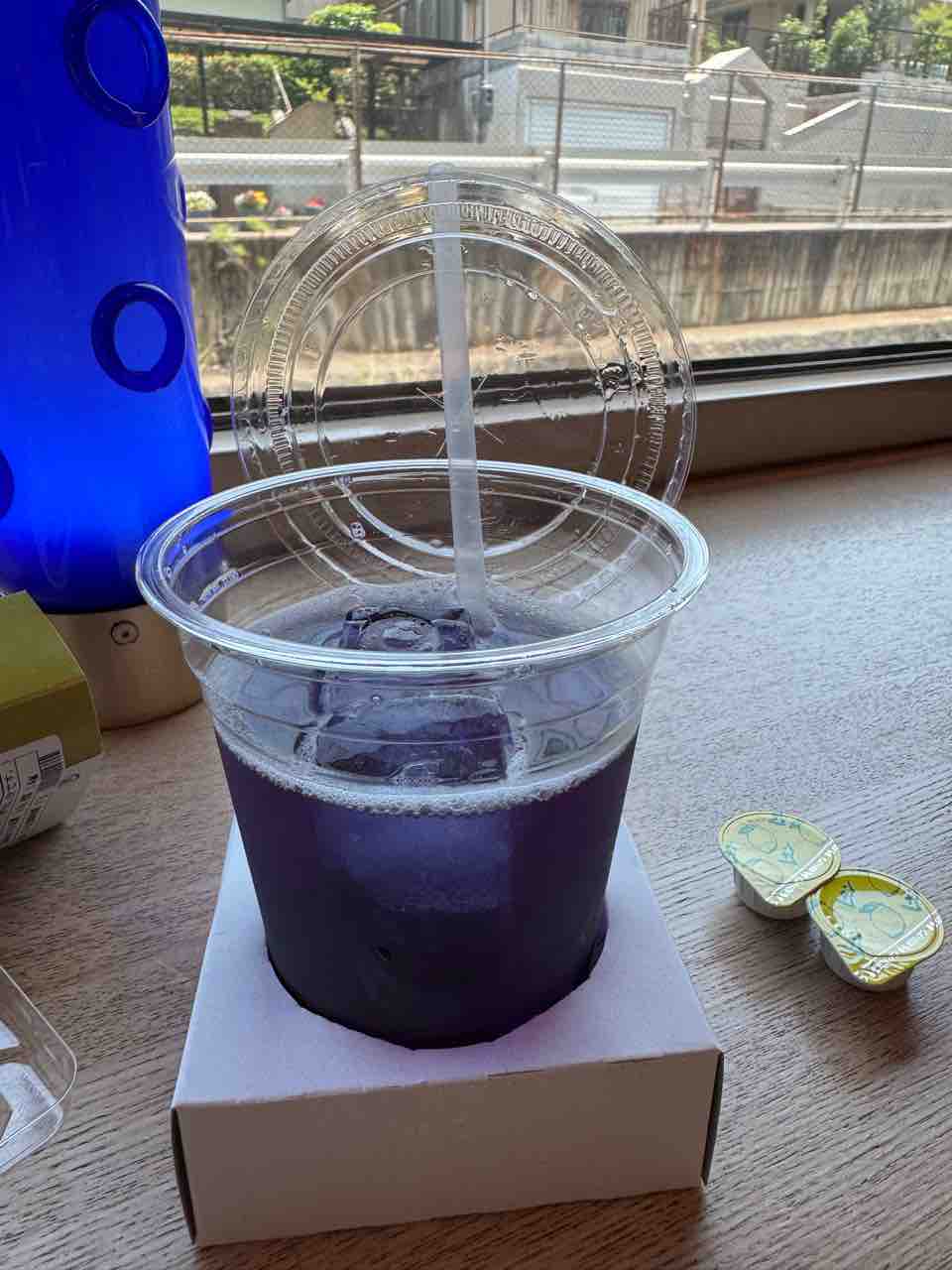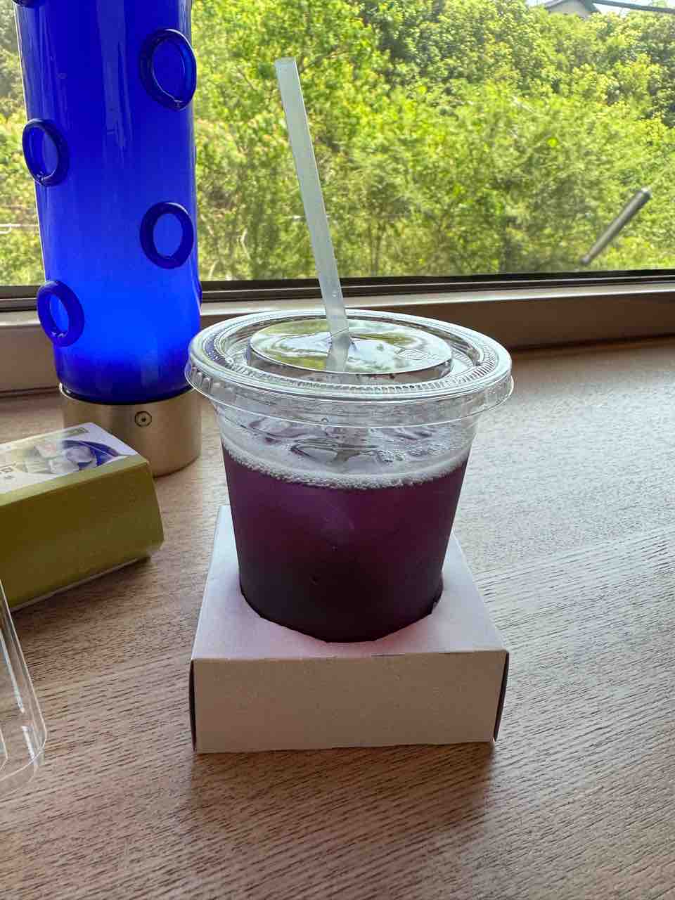 肉まんと、柿の葉寿司、バタフライピーのお茶をゲット。