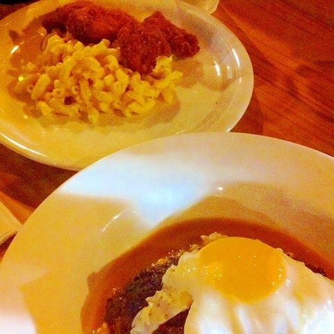 ロコモコと、マカロニチーズと、フライドチキンをシェア。