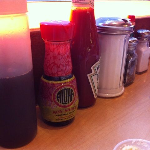 ハワイにはこうして、食卓に普通に醤油が置いてあるの。