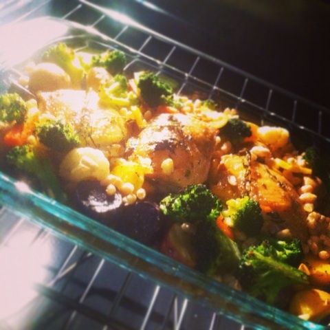 いつもは、ぐわーっとのっけて、オリーブオイルまわしかけて一気に焼いちゃうんだけれど、ちょっぴり気がむいたので、野菜ひとつひとつ下ごしらえしてからオーブンに入れてみました。
