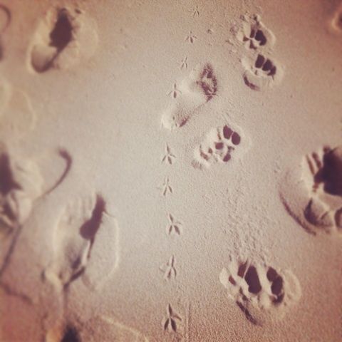 鳥と犬と人間の足跡。