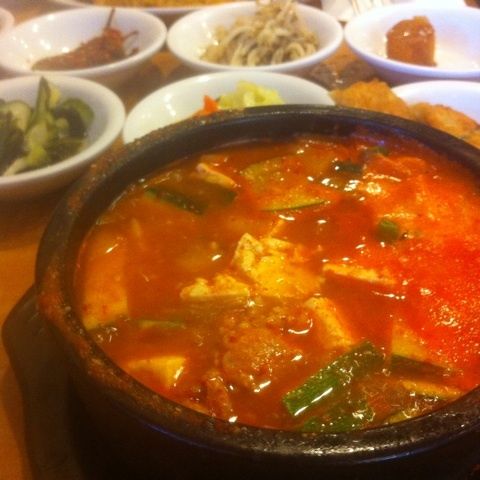 私はハイキングでヘトヘトの体にスンドゥブ♪