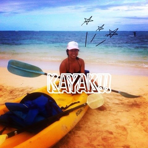 諸事情により、お腹隠しスタンプつきのカヤック写真。