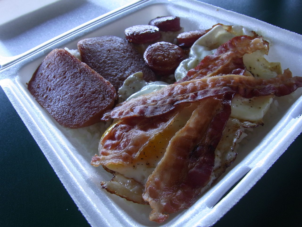 置いてあるものは、スパムと、ソーセージ、ベーコン、卵なんだけれど・・・。