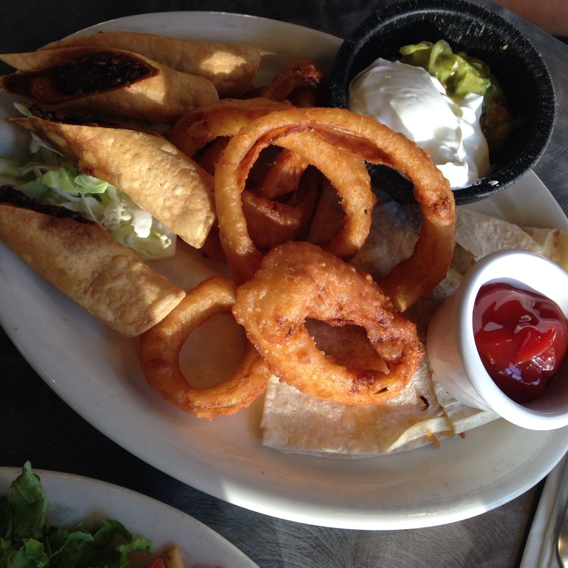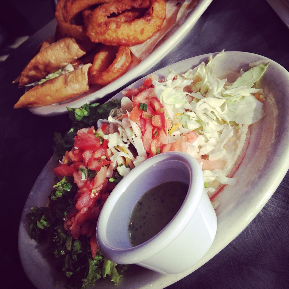 こっちのプレートは、ハッピーアワーのププ(おつまみ)盛り合わせで10ドルでした。