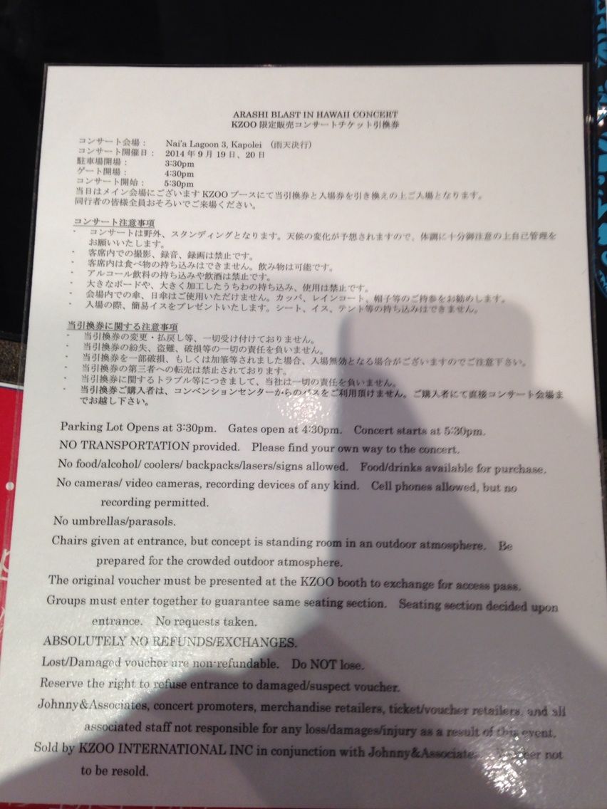 (過去記事:【嵐】アラモアナ白木屋のチケット売り場偵察!)