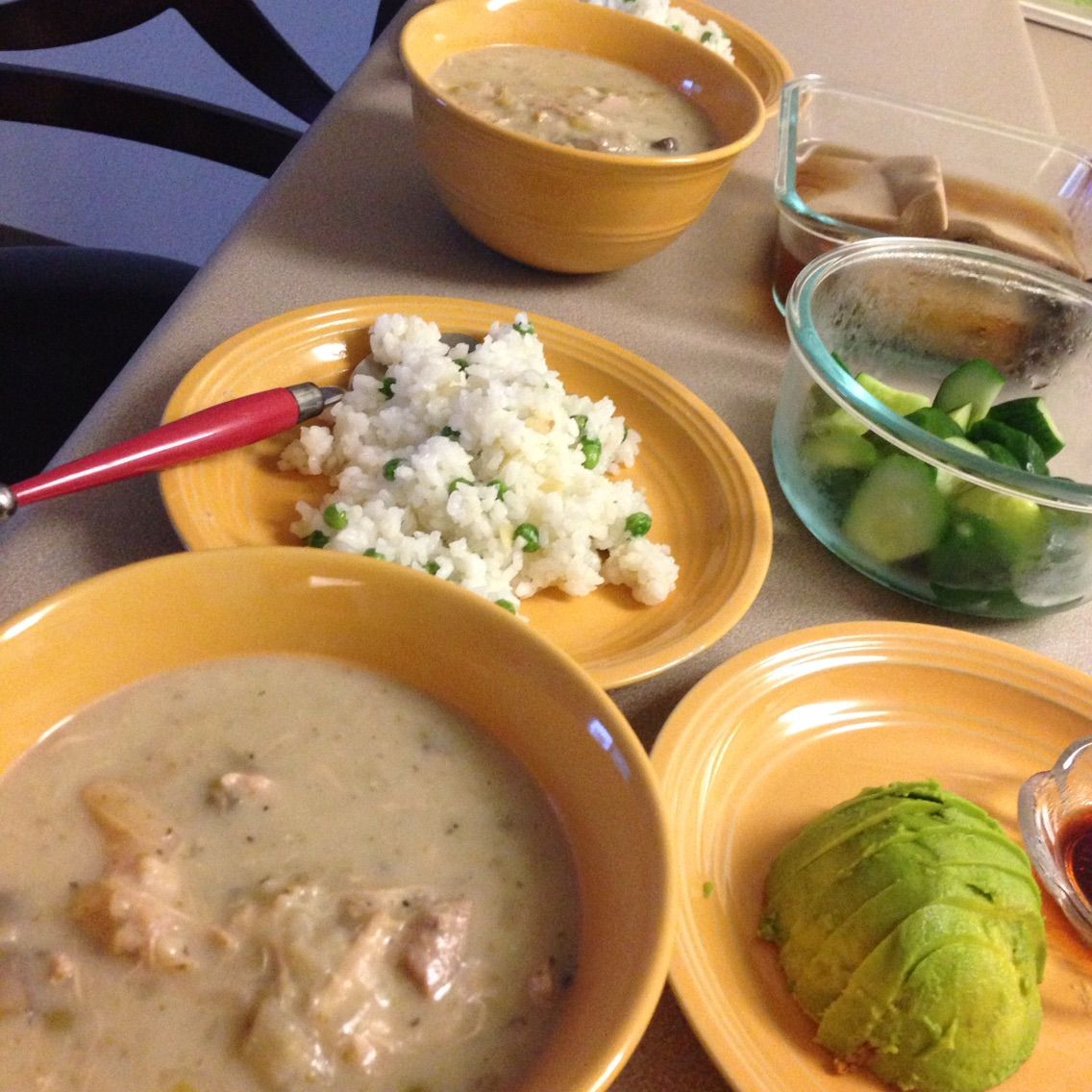 大きな鍋で、チキンと野菜をくたくたに、ほろほろになるまで3時間くらい煮込んで、小鍋にうつしてシチューにしたりカレーにしたりしていました。