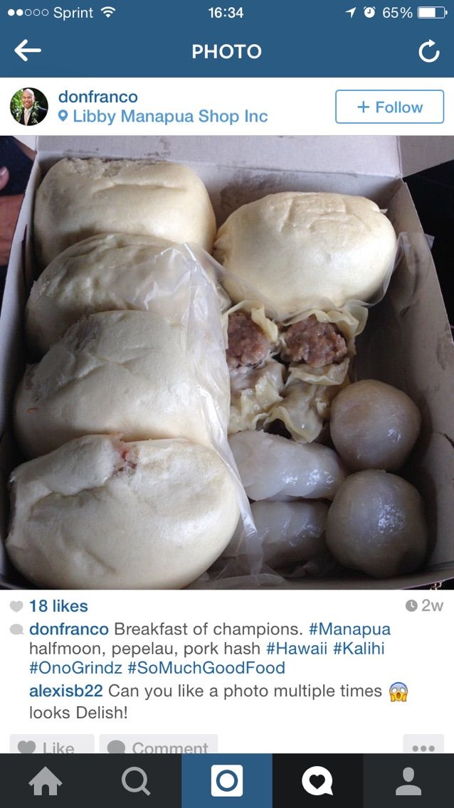 肉まん(Charsiu Pork Manapua 1.60ドル)は、ハズレだったのか標準なのか分からないけれど肉がすごく少なかった・・・。