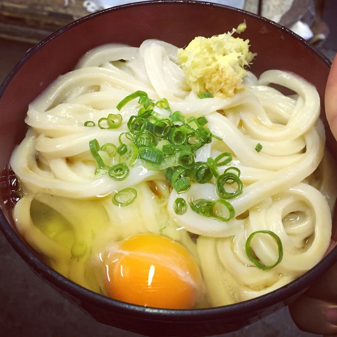 注文をして、うどんをもらったら薬味も、つゆも、卵も全部自分でやるのだ。
