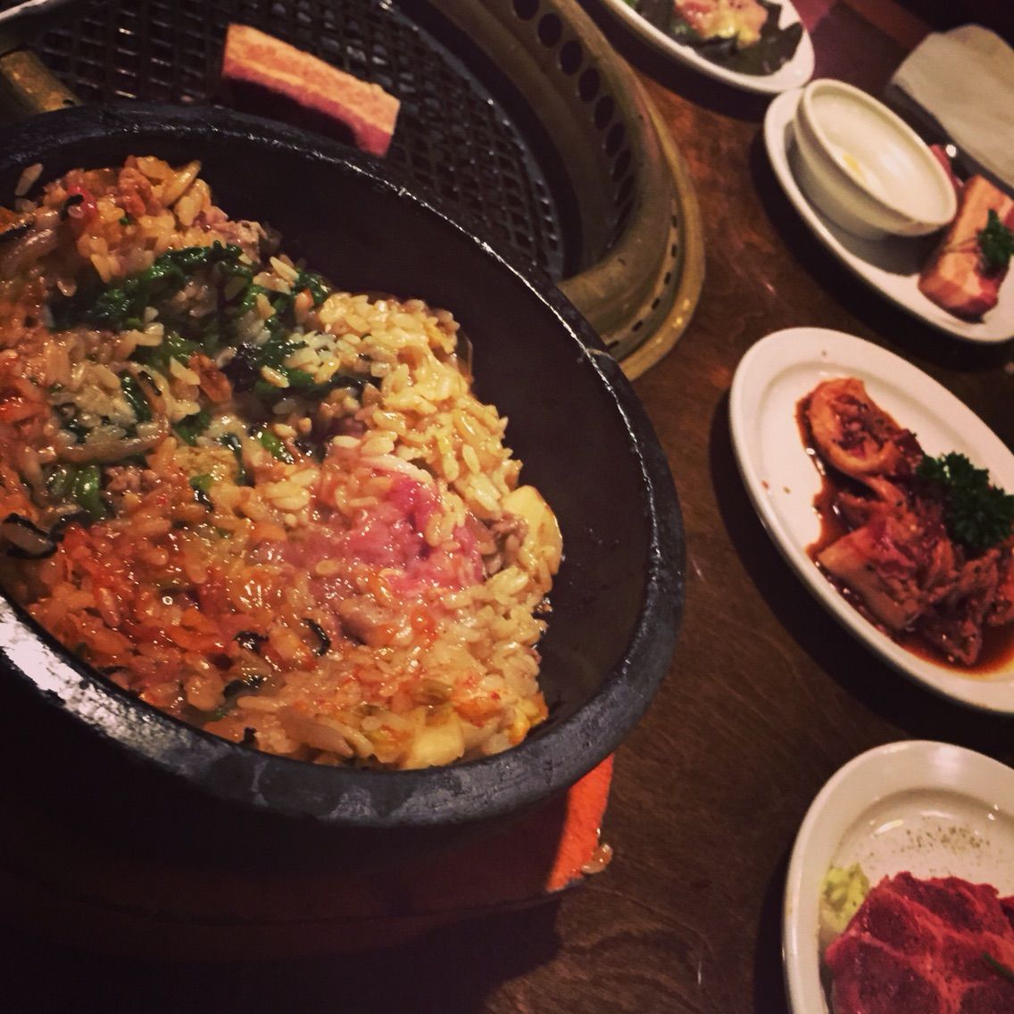 ハッピーアワーに行ったのですが、ビビンバ2つに、お肉4皿で30ドル分が15ドル・・・・♡