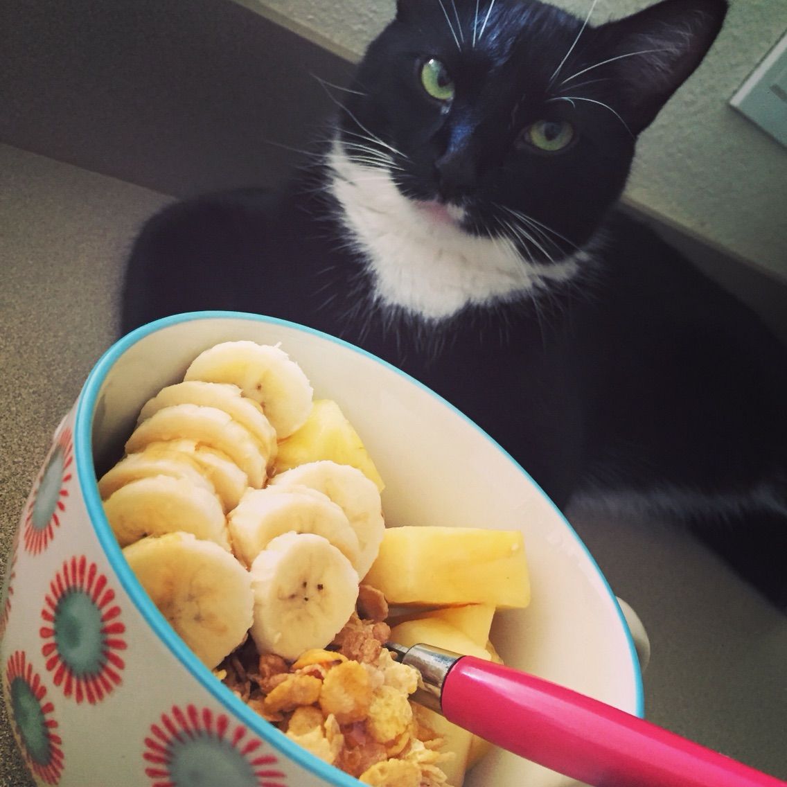 グリークヨーグルト、パイナップル、アップルバナナ、コーンフレーク、はちみつ。