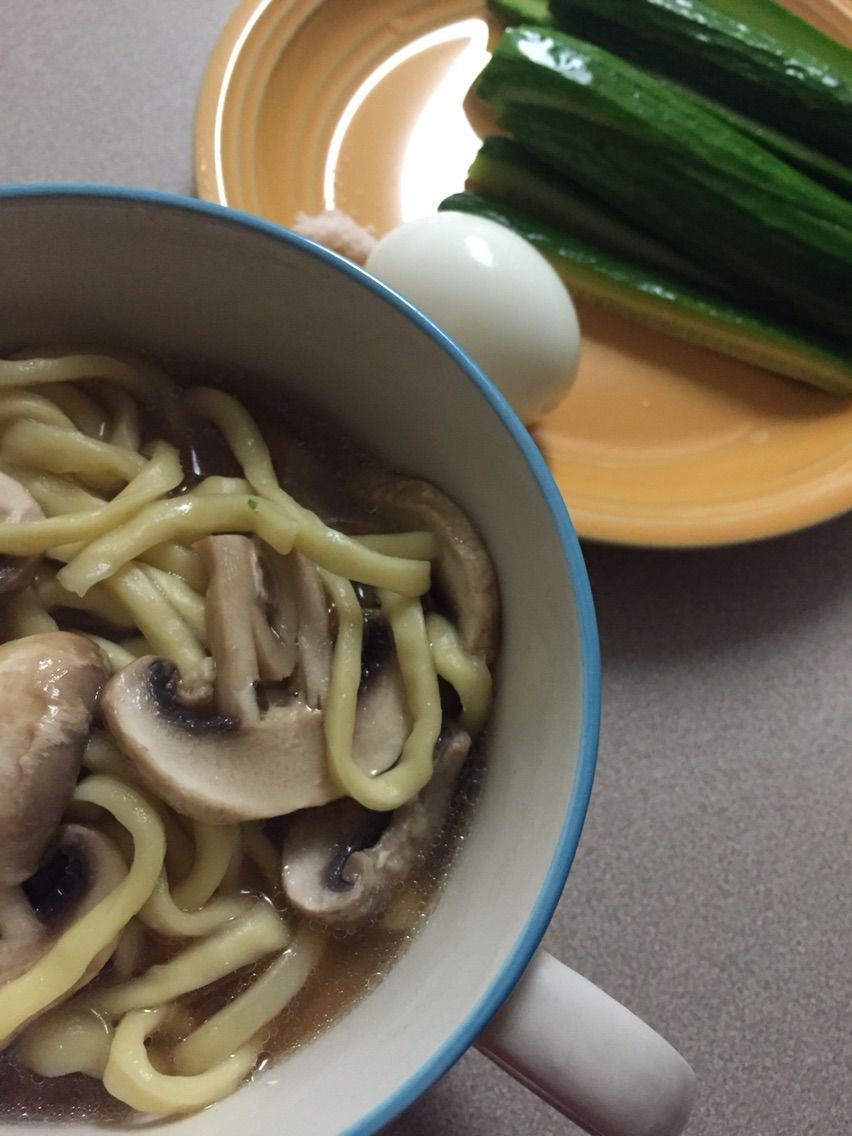 最近ブームの沖縄そば、マッシュルーム入り。