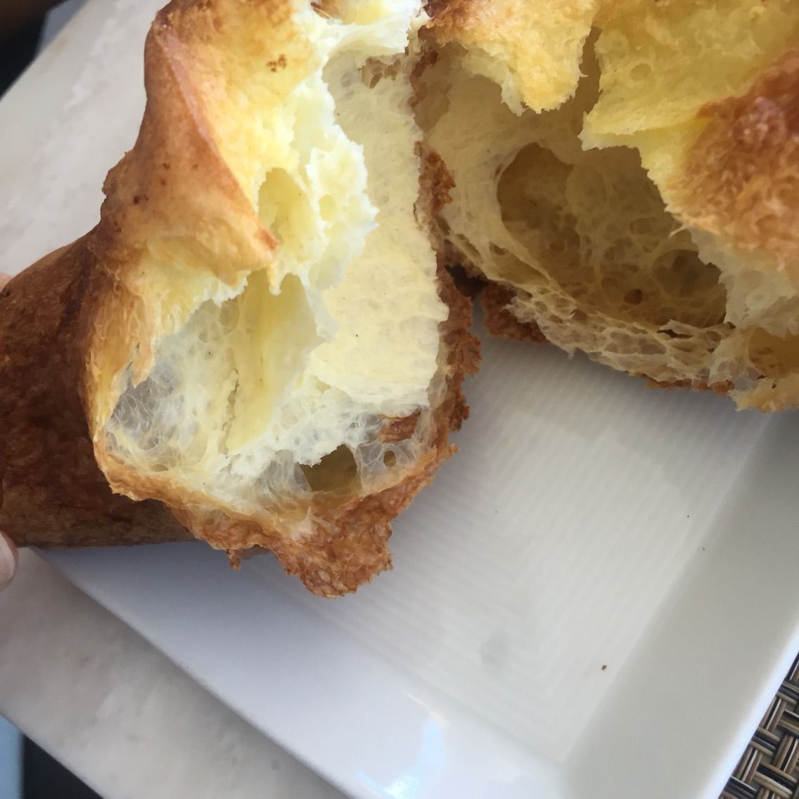 あれ?普通?????外かためのフランスパンみたいな感じで、中もすかすか。ぱりっもちっ!という感じではなくて、かたっすかっ!っていう感じ・・・。(´・・`)