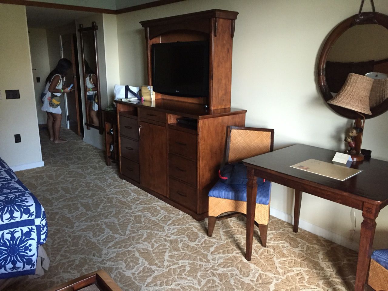 どうやらコネクティングルームになるようなんだけれど、隣の部屋に通じるドアをおそるおそる開けてみているわたし。