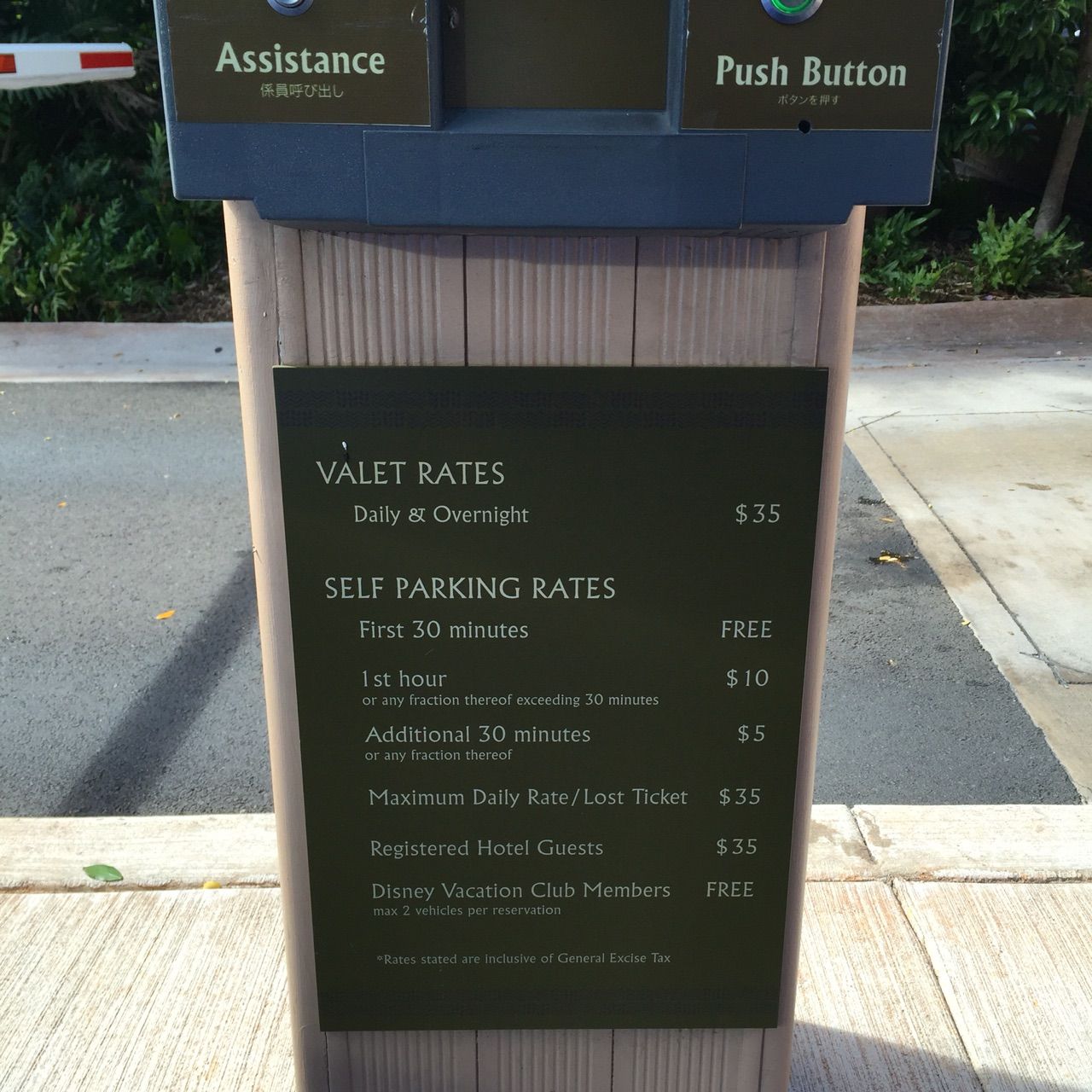 車でそのままゲートまで行くと、スタッフが駐車してくれるんだけれどチップを払わなきゃいけないので、節約してセルフパーキングに。(笑)
