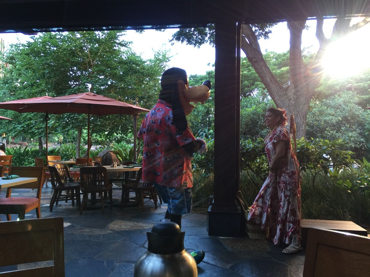 朝ごはんを持って戻ってきたら、「さっきグーフィーが1人で来たから写真撮っちゃった」と夫。(笑)