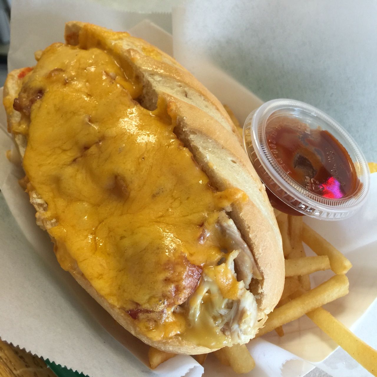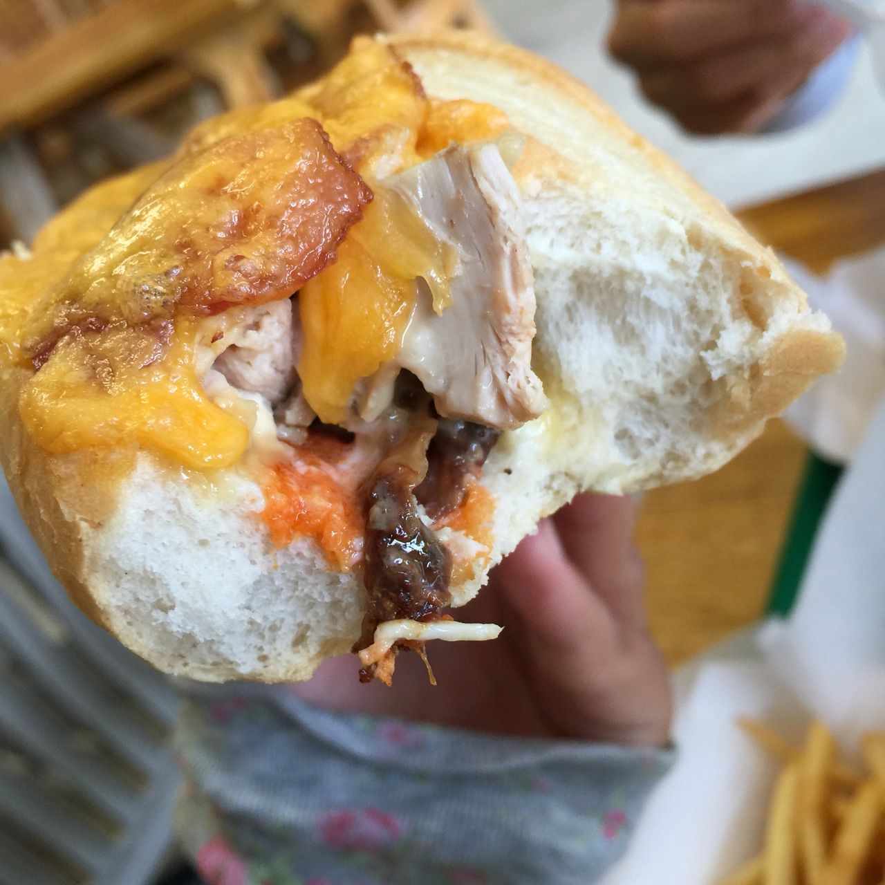 サンドイッチはこんな感じで、チキンがたーっぷり、つまってるのだ!