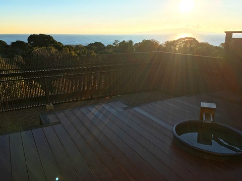 今朝はトレイルウォークをさぼって、朝陽の中入浴✨