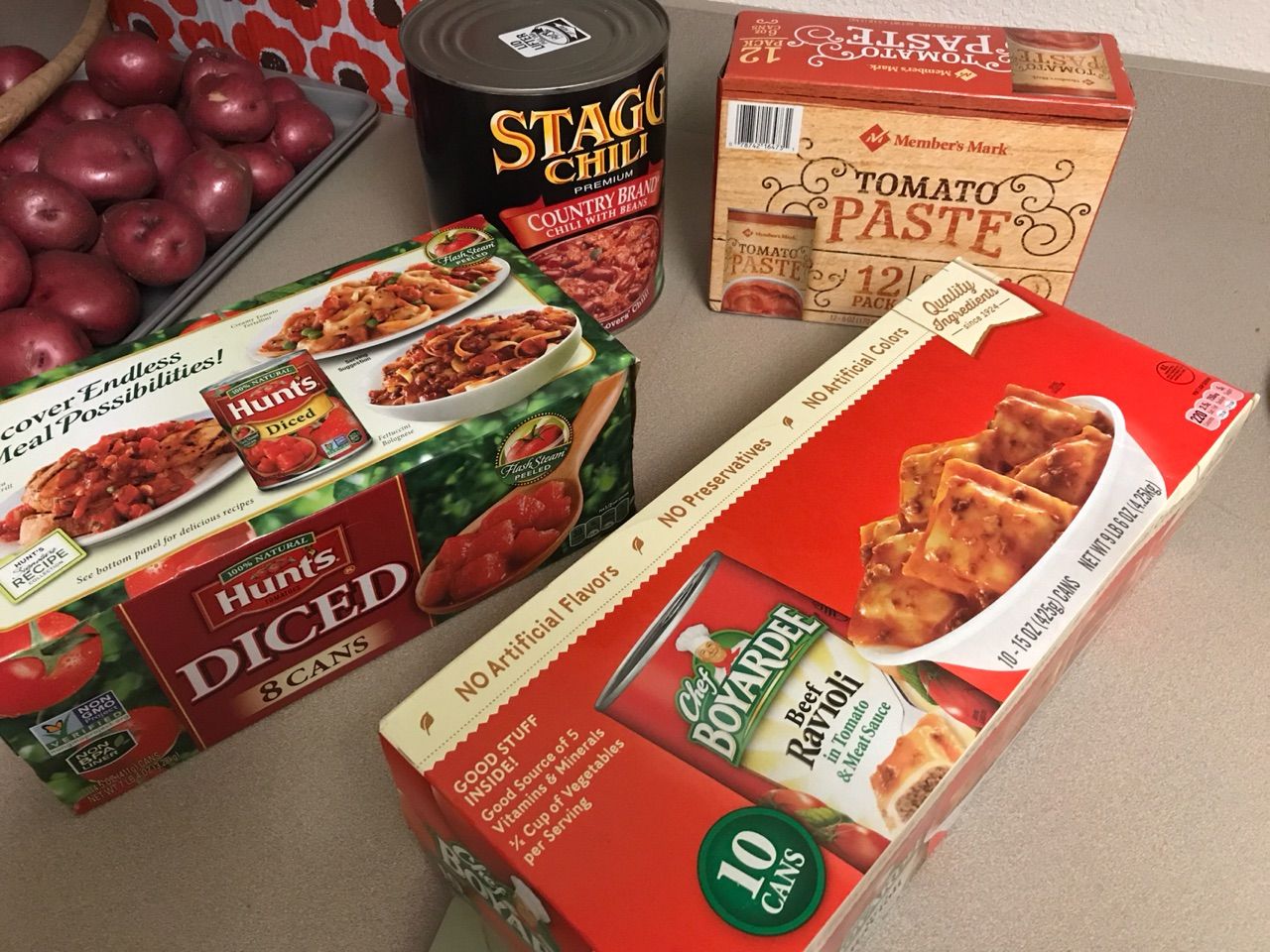 手前の缶入りラビオリは夫の大好物で、せっせと夜食に食べてるよ…。