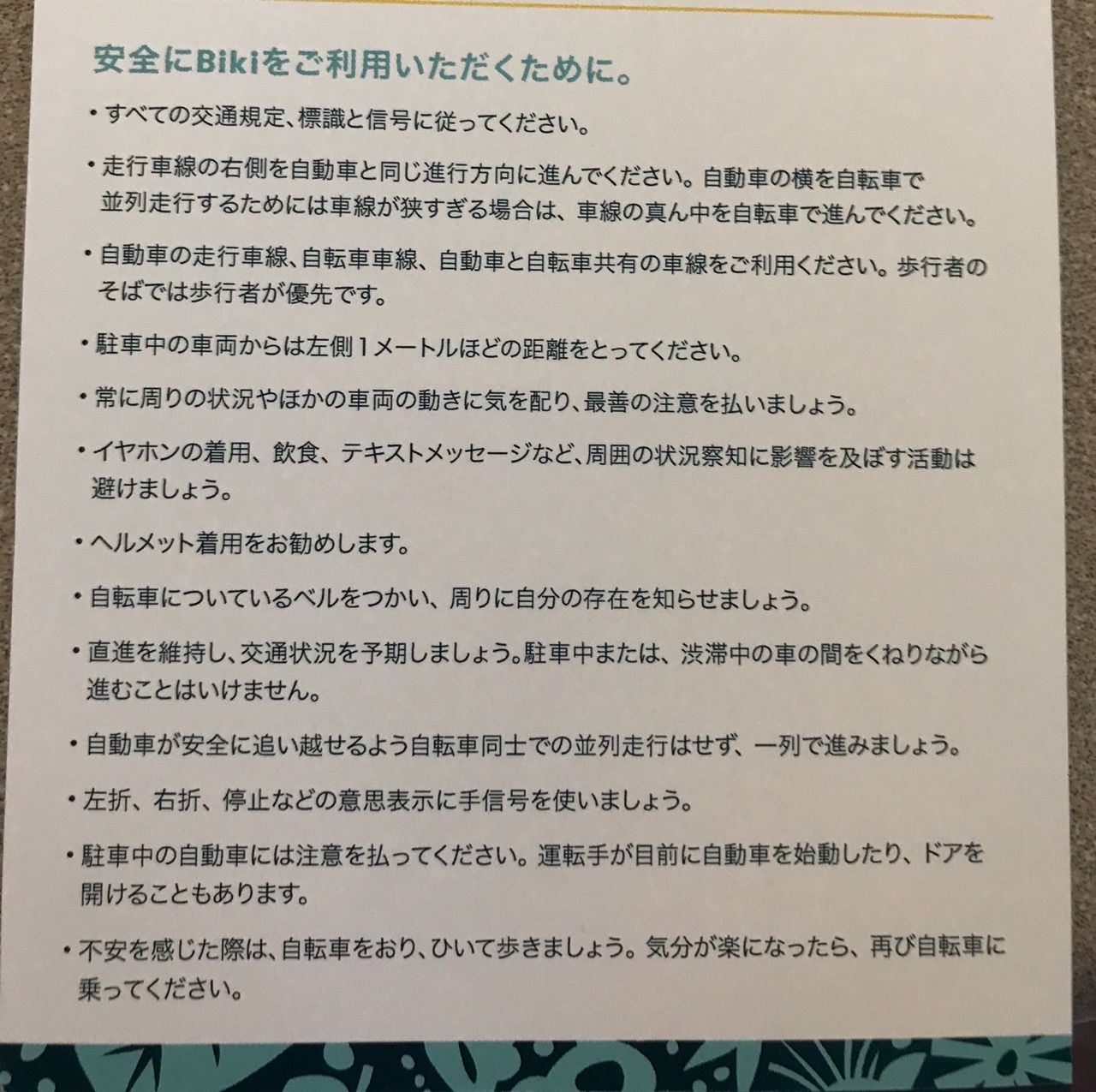 水曜日に申し込んだバイクシェアBIKIのカード。