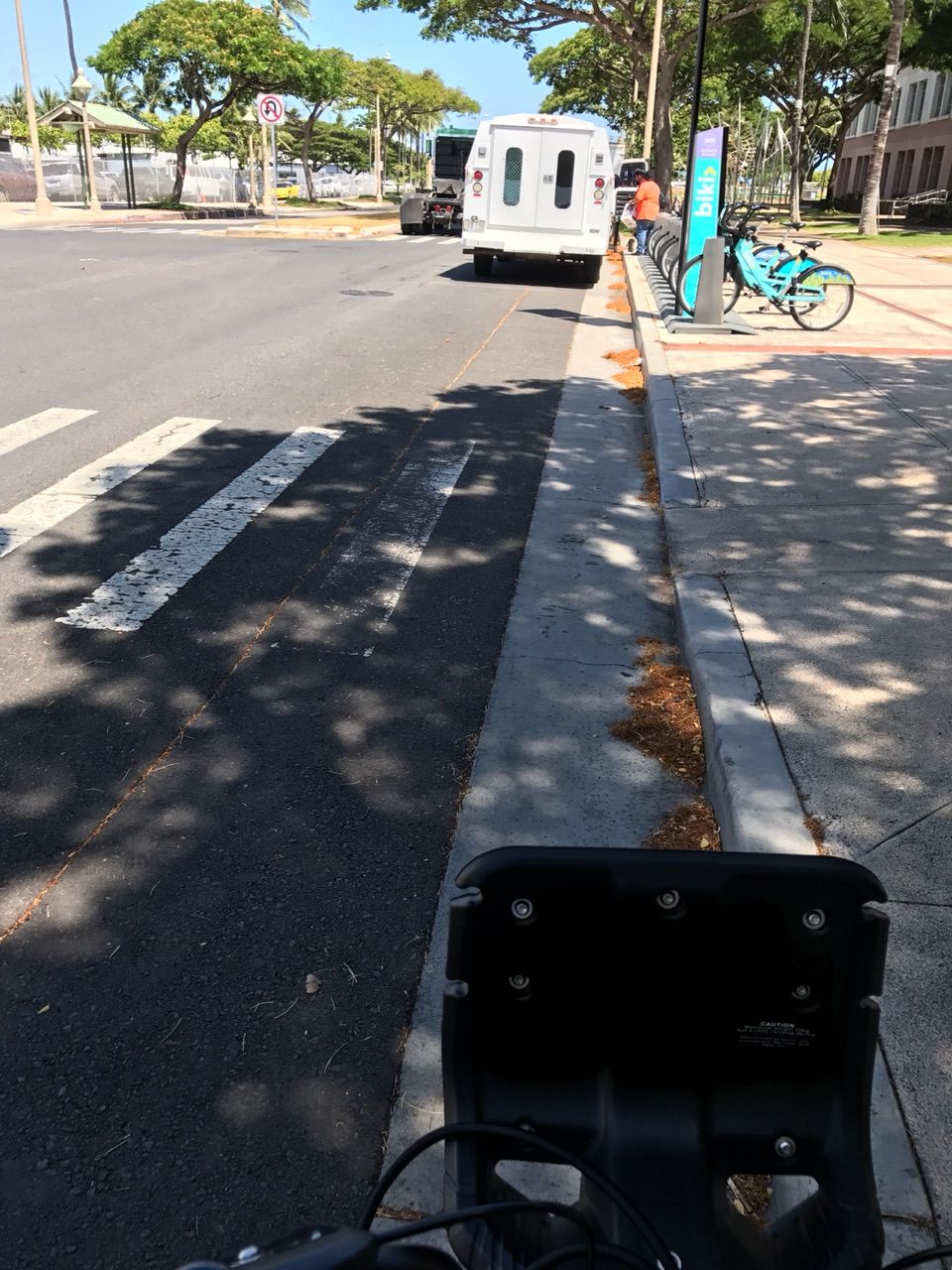自転車乗ってる人は、大体こんな感じでアラモアナブルバードを避けつつ乗ってるよー!