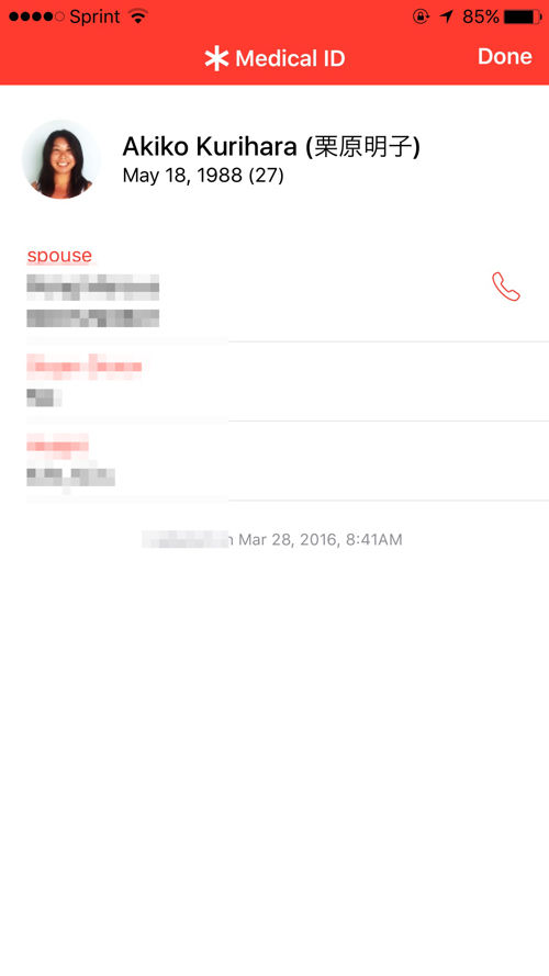 で、それを聞いたわたしが「メディカルID設定しておくといいですよ〜」って言ったら、結構知らない人がいたのだ!