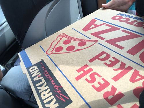 さすがにピザ持ってバス乗るのはどうかなと思ったので!