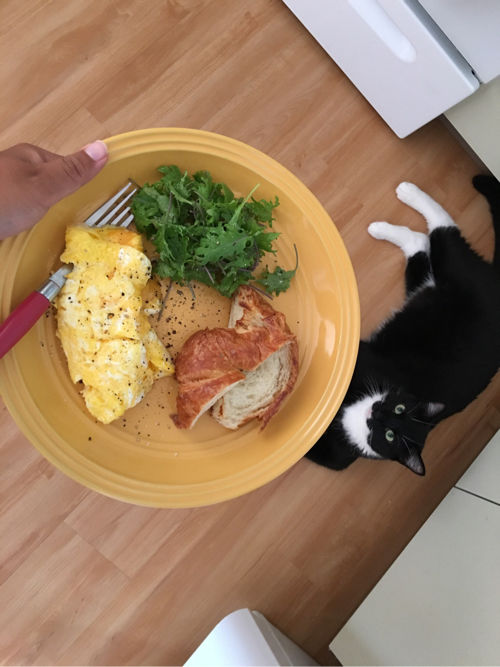 昨日は、コストコのクロワッサン半分、ベビーケール、それからチーズたまご焼き。