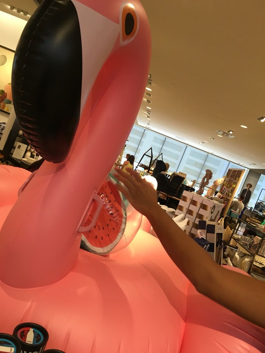 このフラミンゴの浮き輪が可愛すぎて欲しい!と思って値段見たら75ドルでした(笑)