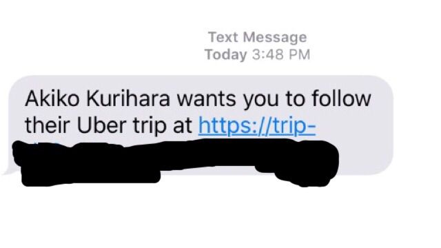 Uberの配車をオーダーすると、その自分のtripを、誰かに送れるのだー!