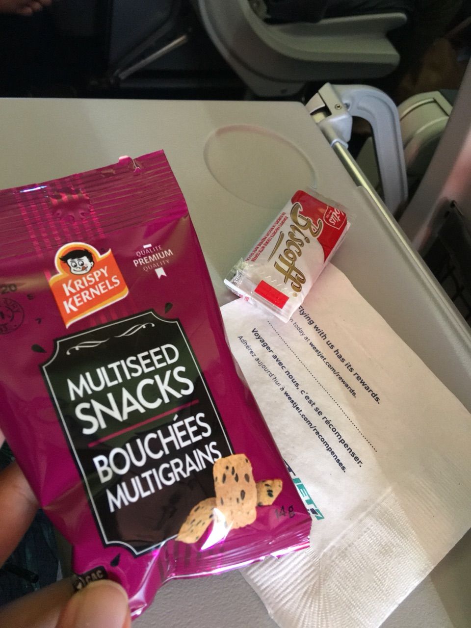 6時間のフライトだけど、ごはんは出なくてクラッカーかクッキーのみ。