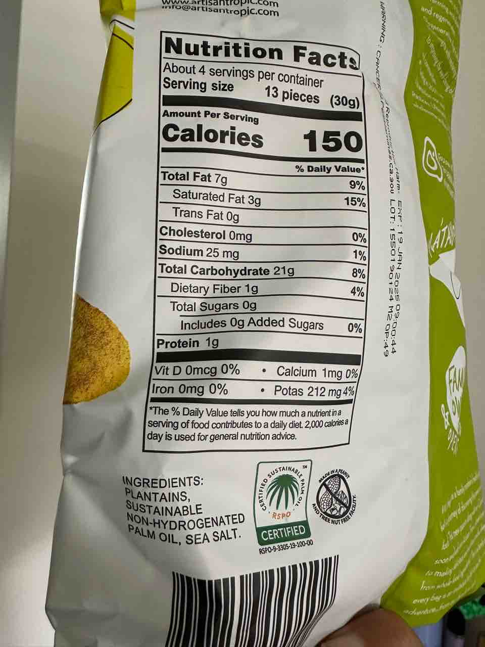 これも原材料三つ。プランテイン🍌、パームオイル、シーソルト。