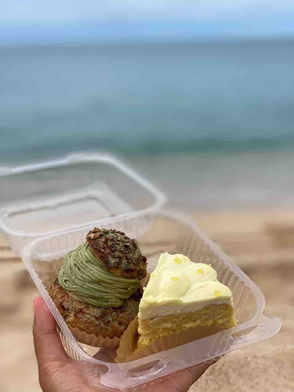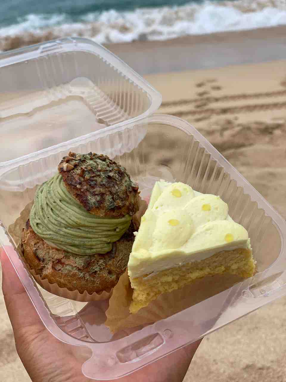 ビーチに行く前だっていうのに夫がホールケーキ買おうとしてた🤣