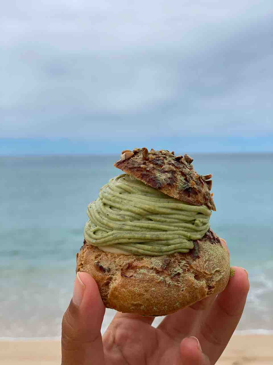 抹茶シュークリームは中にカスタードクリーム(?)が入ってて二層になってました!