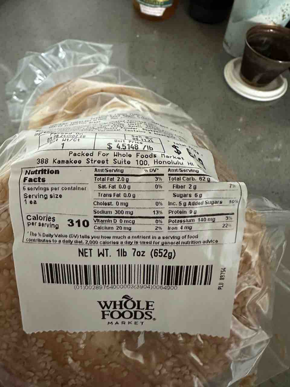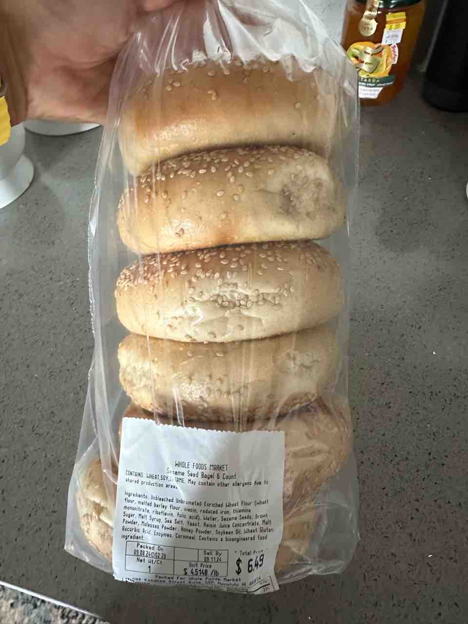 ホールフーズにて。6個で6.49ドルの庶民に優しいベーグル。