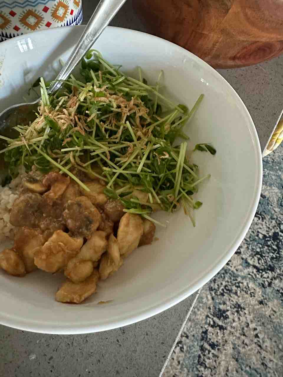ランチは、beettoのSHIORIレシピから鶏胸肉のニンニク味噌炒め!
