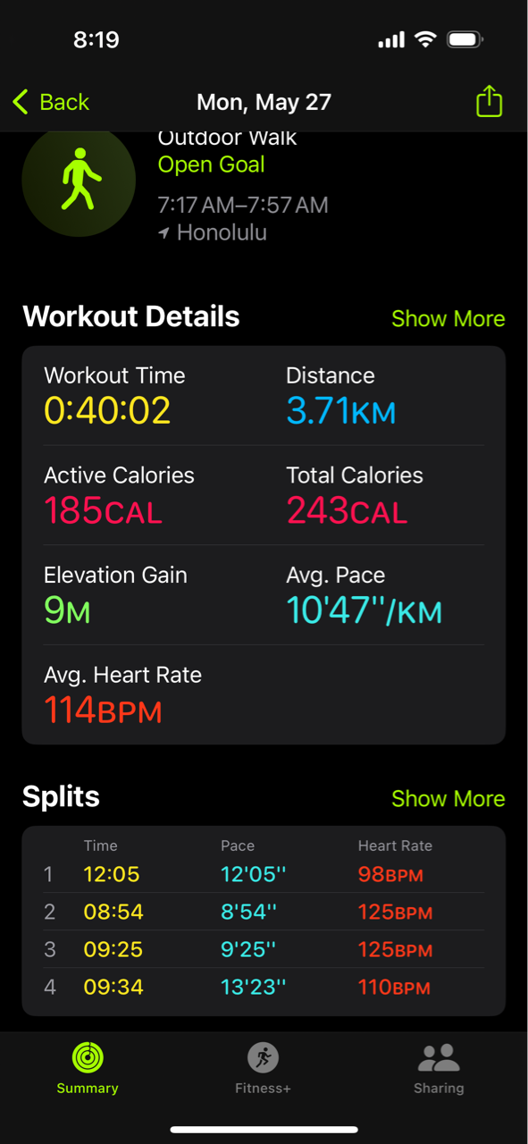 ちなみに歩くだけだと心拍数がなかなか上がらないので、たまに20秒くらい走ってみたり歩いてみたりしてました。
