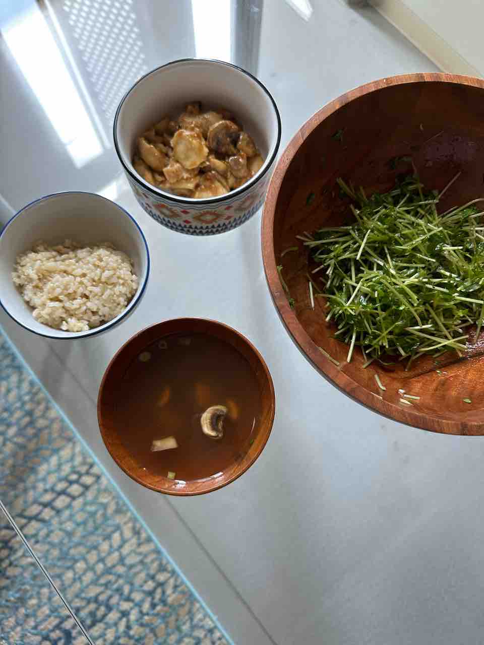 買ったばかりのサラダボウルを使いたくて豆苗しか入ってないのに使った。