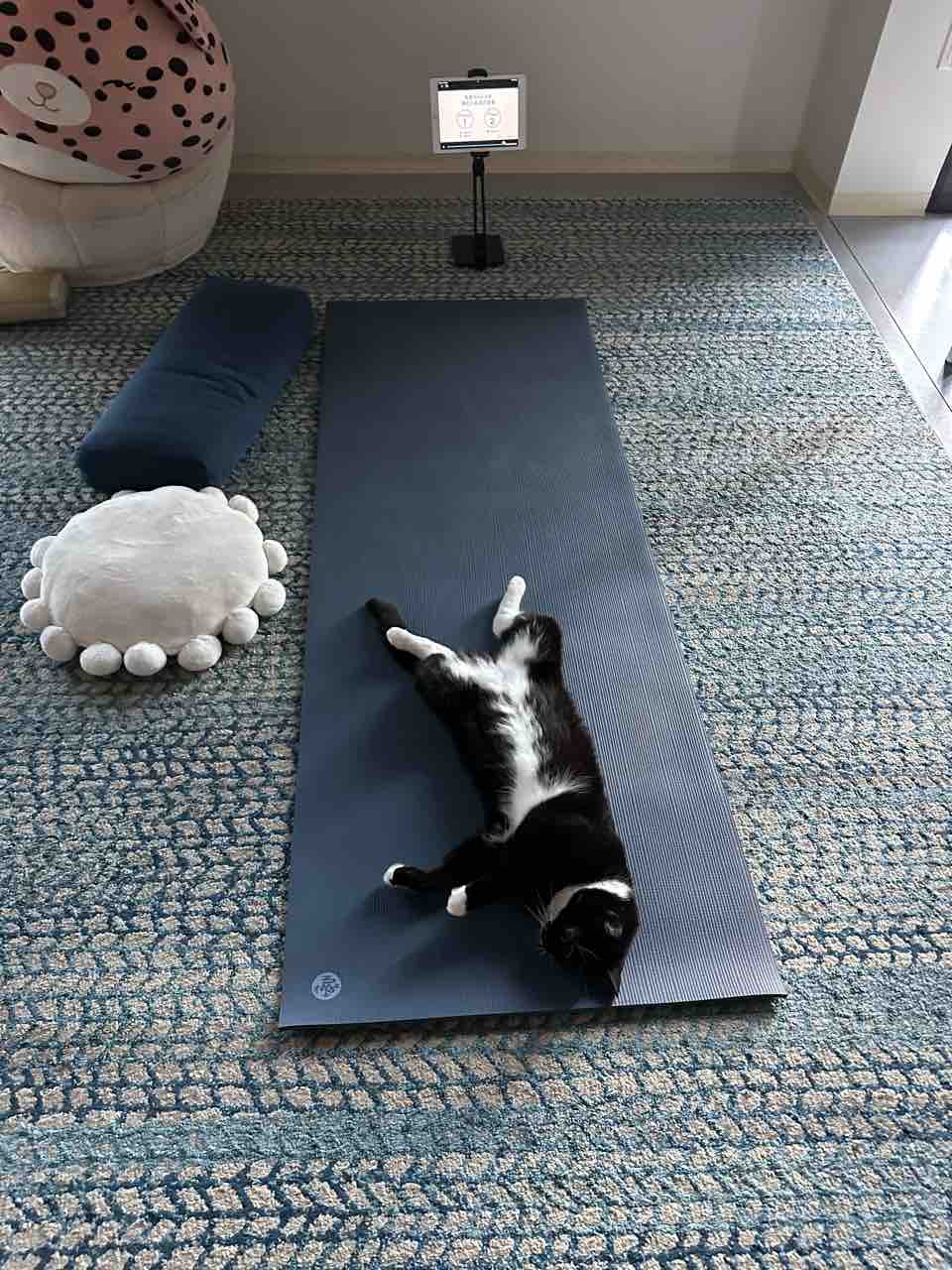 頑張ってバランスとってるところ、足をたま様🐱に齧られる。