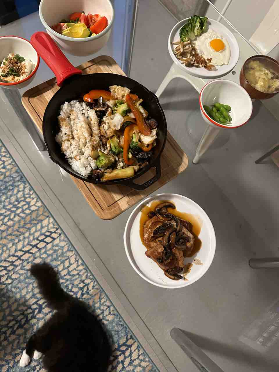 スキレットそのままドドンと出すとなんかボリューム感あって夫が満足。