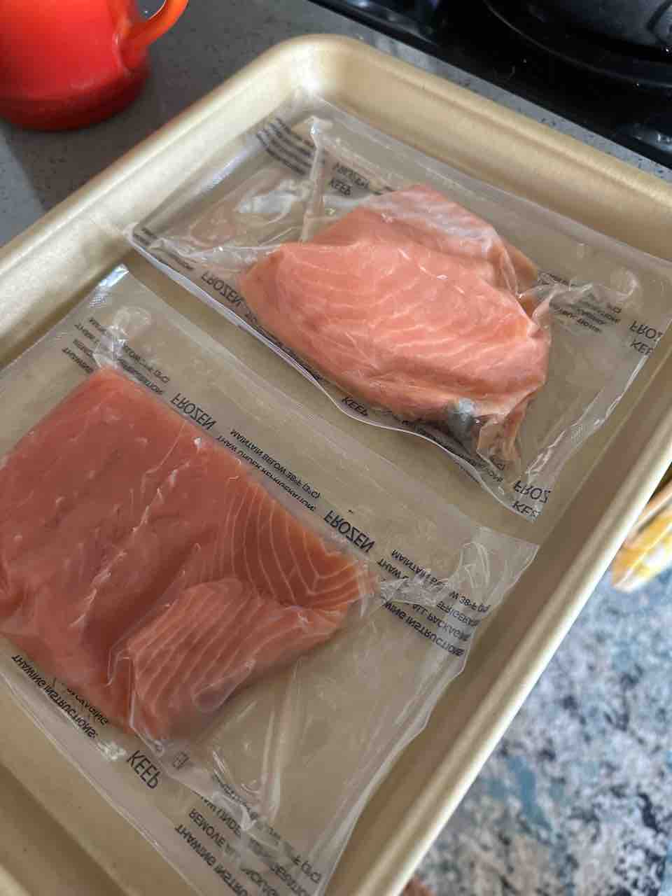 アメリカのサーモンは1切れ5オンス(142g)が多いようで。