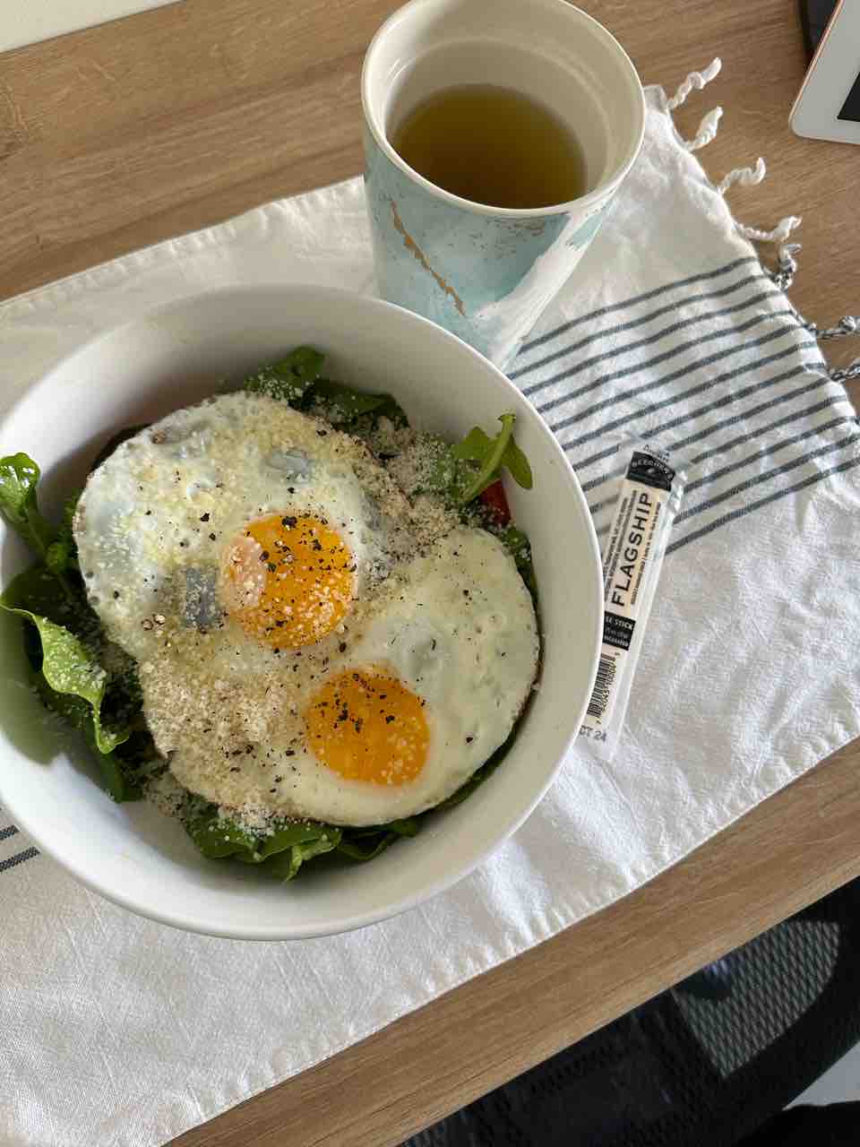 卵はアボカドオイルとトリュフソルト!パルミジャーノレッジャーノがけ〜🧀