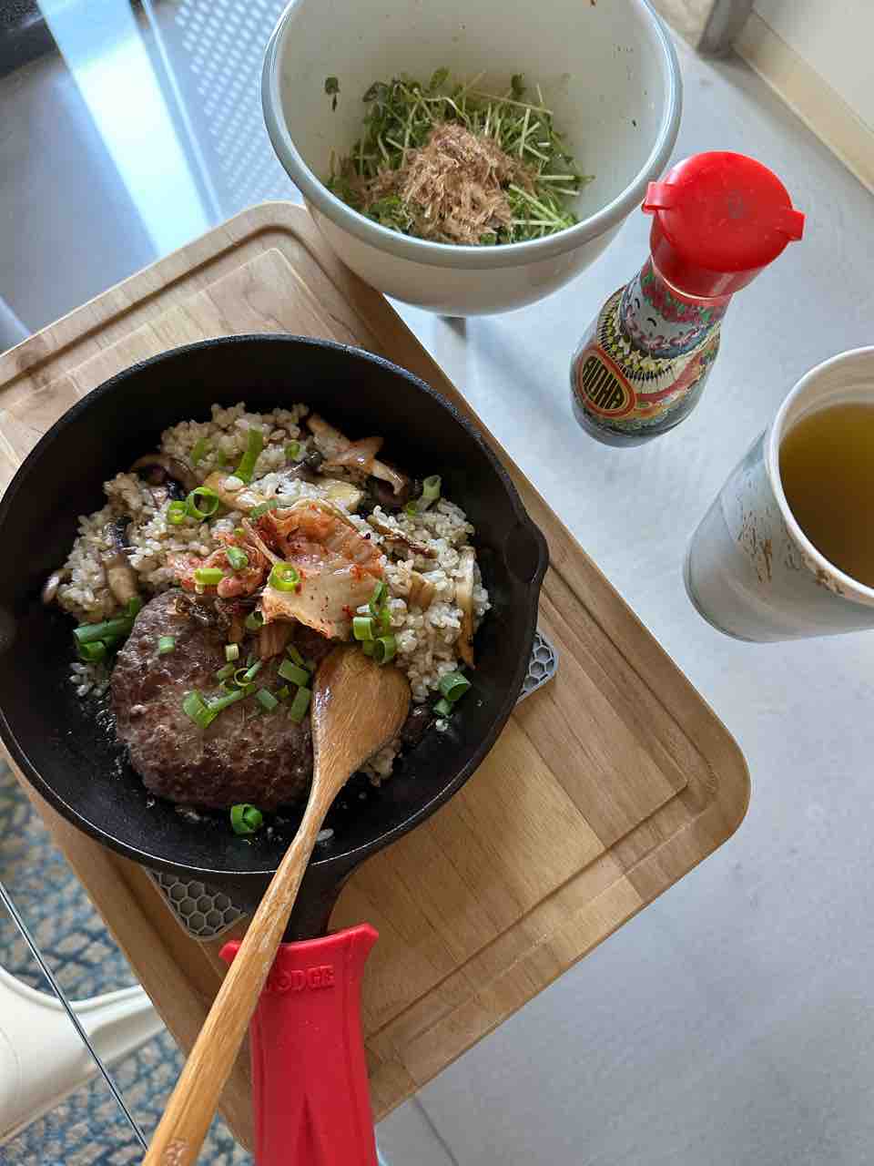 ランチは、冷凍庫に眠っていたグラスフェッドビーフのパテを救出しました。