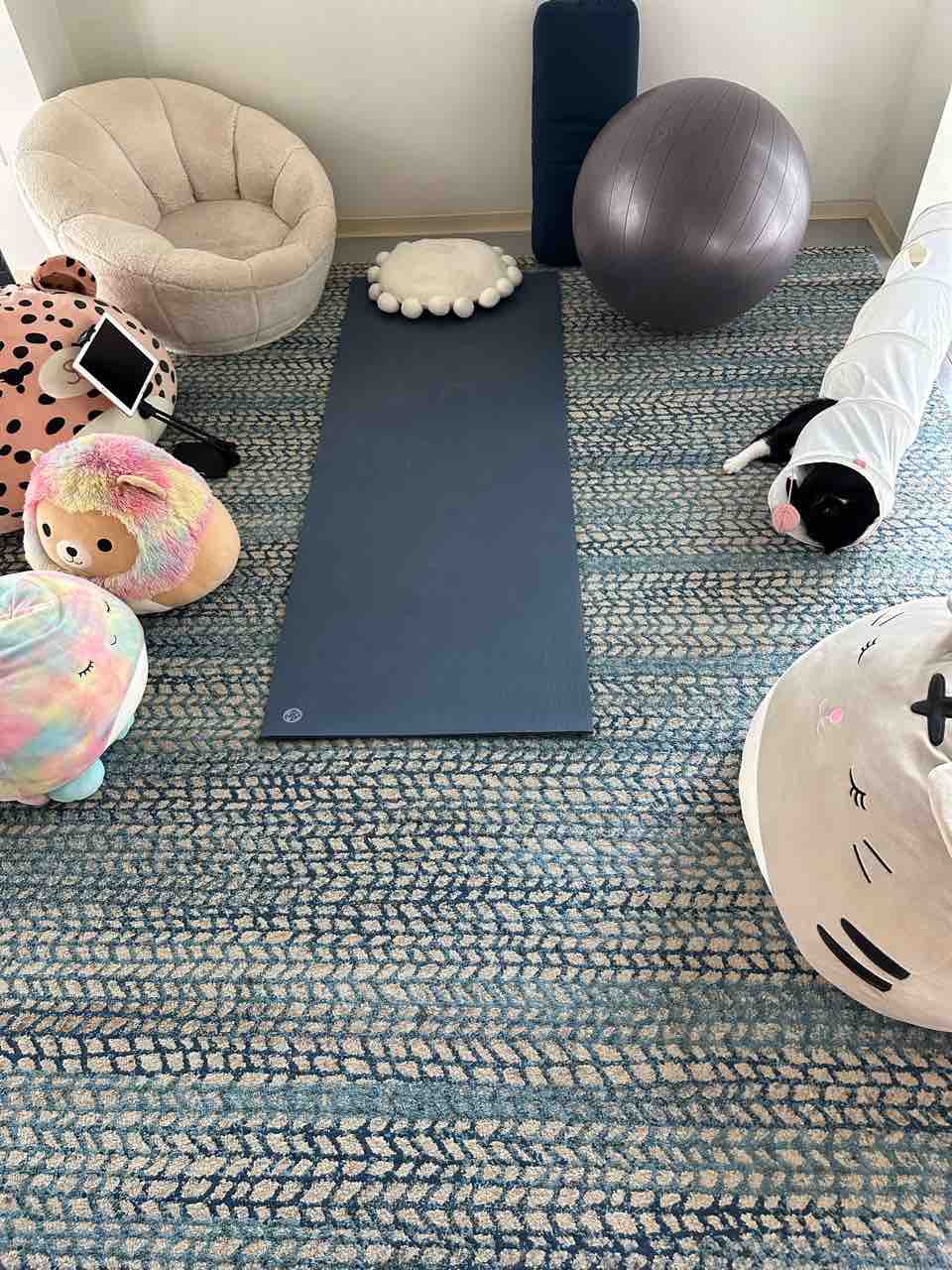 朝はストレッチ。