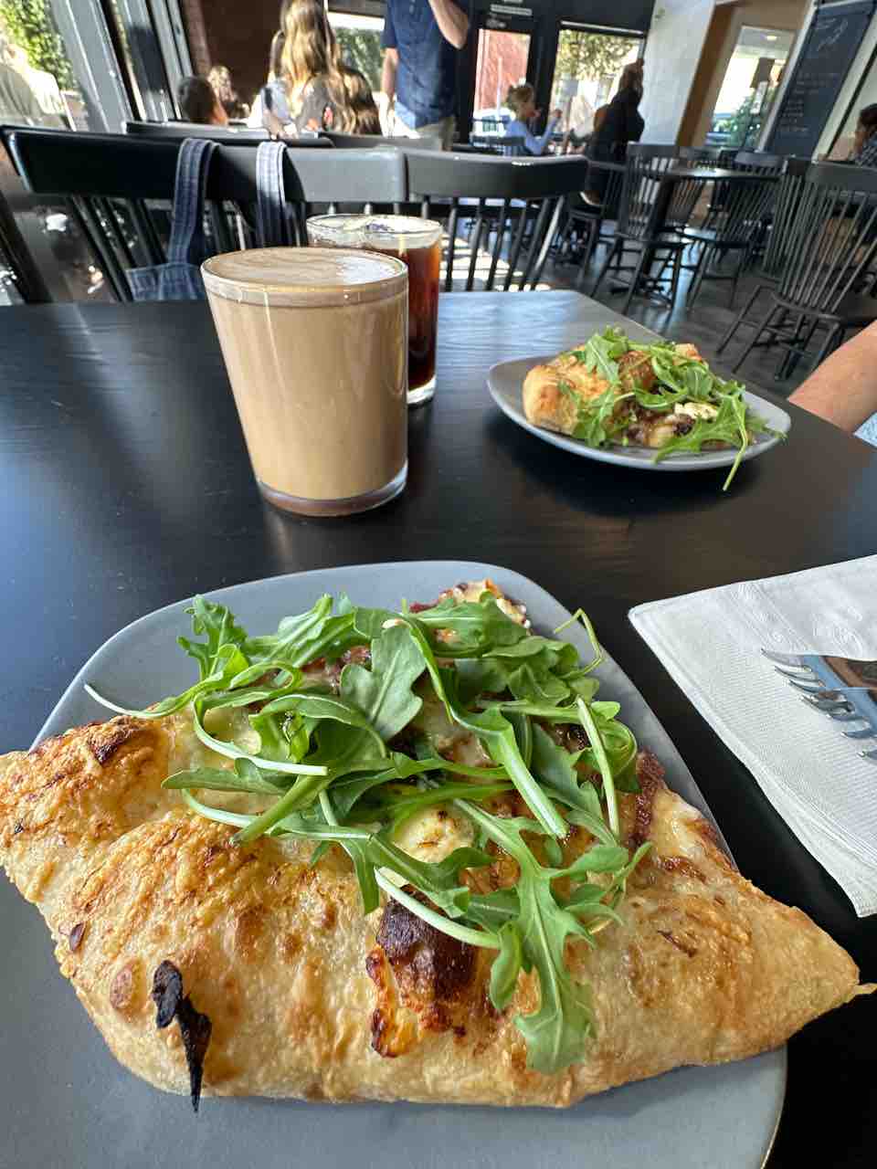 ハーフサイズのピザ(12ドル)・アイスアメリカーノ(4ドル)・モカ(5ドル)を購入。