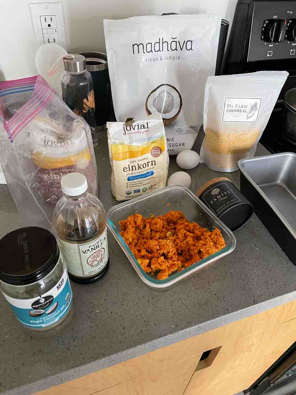 古代小麦のアインコーン(ヒトツブコムギ)に、ココナッツオイル、ココナッツシュガー、タヒチの塩を使って